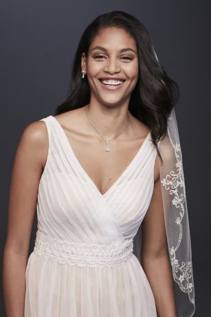 Pleated Tulle Tank Wedding Dress With Lace Waist David S Bridal